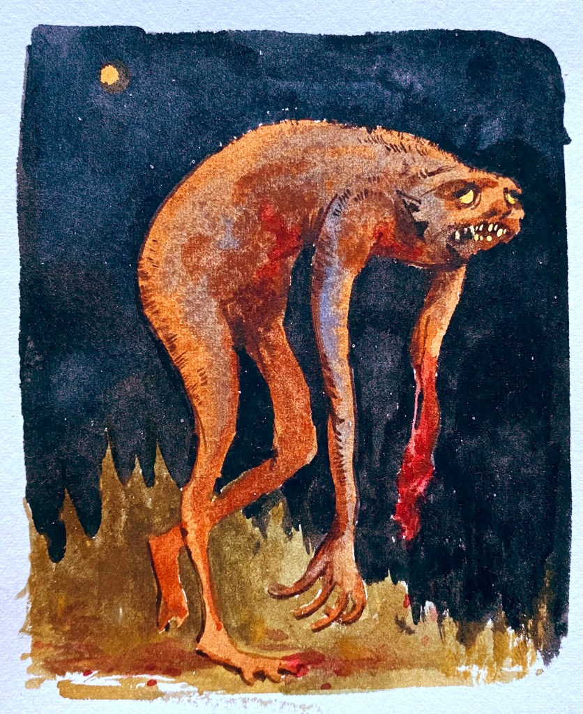 "Poor Grendel" - 4x5" watercolor on cotton paper $40 + shipping
