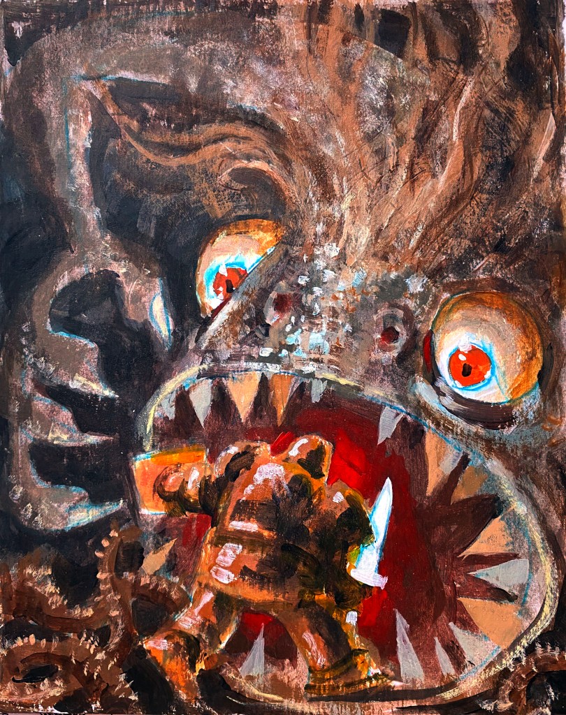 "Chaos Monster Swallowing a Knight" - 8x10" acrylic on paperboard $40 + shipping